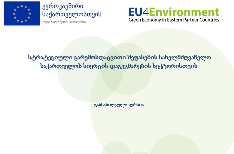 აღნიშნული პროექტის ფარგლებში, მომზადდა სტრატეგიული გარემოსდაცვითი შეფასების საქართველოს სივრცის დაგეგმარების სექტორისთვის სახელმძღვანელოს პროექტი. სახელმძღვანელოს შემუშავების მიზანია სტრატეგიული გარემოსდაცვითი შეფასების (სგშ) პროცედურის ეფექტიანი განხორციელება, საქართველოს სივრცის დაგეგმარების სექტორში გამოყენებისას მდგრადი სივრცითი განვითარების ხელშეწყობა, გარემოს დაცვის პრინციპების, მიდგომების ადრეული და ეფექტური ინტეგრაციის უზრუნველყოფა სივრცით სტრატეგიულ დოკუმენტებში.