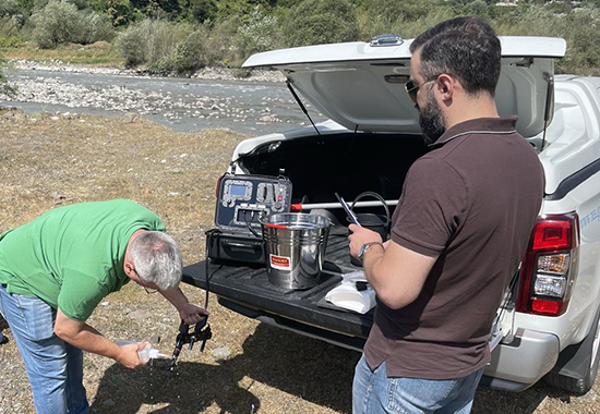 ვიზიტის ფარგლებში, სააგენტოსთვის შეძენილი წყლის პარამეტრების მზომი ხელსაწყოს საშუალებით, საველე სამუშაოები, წყლის სინჯების აღება და ადგილზე გაზომვები განხორციელდა.